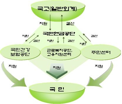 65세 이상 | 국민(직역)연금‧기초연금(10%) | 공공부조 | |||
