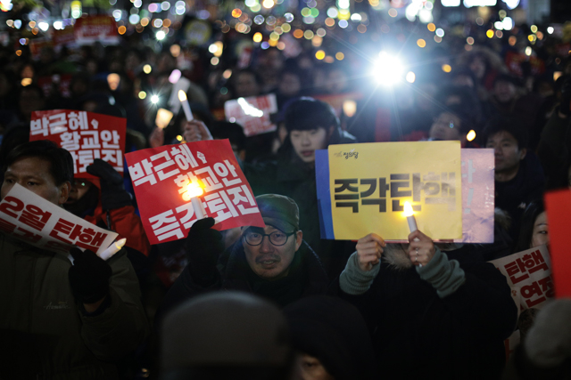 하지만 촛불의 응전은 변함이 없이 담대하다. 지난 11일부터 촛불의 숫자가 증가한 것은 단순한 야당의 참여 때문이 아니다. 설 명절과 추위를 겪으며 원기를 회복하고 에너지를 다시 충전했기 때문이다. 오히려 야당의 몰상식과 기회주의적 행태가 다시 촛불을 분노케 하고 있다.