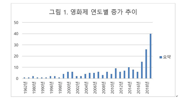 이 192개 영화제가 어떤 해에 각각 시작되었나를 살펴보았다. 2019년에 무려 40개가, 그리고 2018년에 26개, 2017년에 15개 등 최근 3년 사이 도합 81개, 즉 전체 192개의 42%가 출범했다. 우연일까? 이런 숫자를 우연으로 보기는 어렵다. 영화제 관계자들은 영화제 운영이 모두 어렵다고만 한다. 재정적으로 남는 장사가 되는 영화제는 사실상 없다. 대부분이 국고나 지방정부 재원 등으로 운영되기 때문에 수익성을 기준으로 삼는다면 영화제란 애초 망하는 행사다. 돈을 쓰더라도 좋은 성과를 낸다면 괜찮다는 것이 암묵적인 전제다.